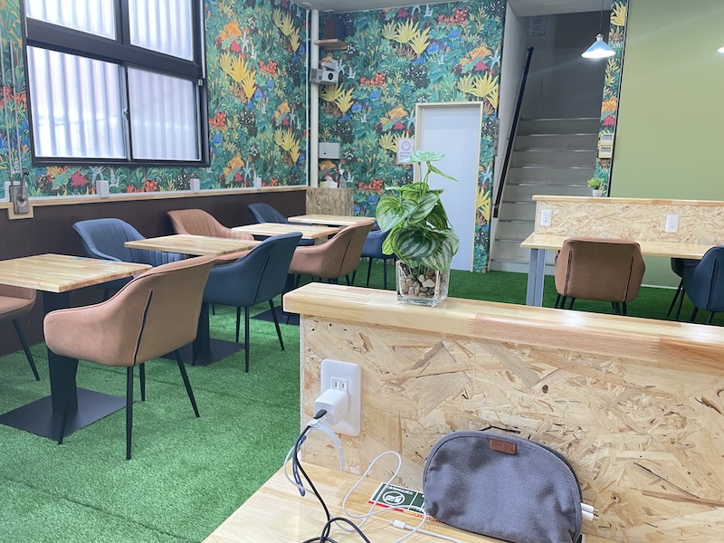 こんな感じ。カフェって言っても、どちらかというと「コワーキングスペース」のほうがしっくりくる内装。Wi-Fi、電源があるのでパソコンなどでの執筆作業には困りません。